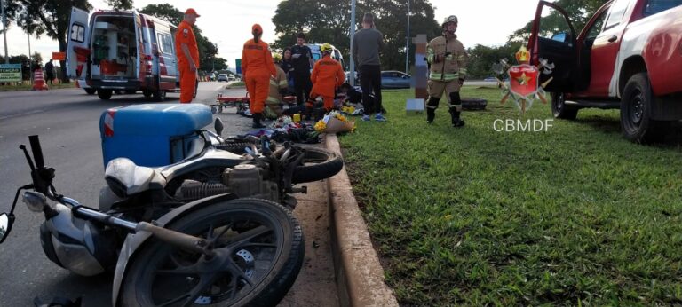 O Corpo de Bombeiros Militar do Distrito Federal (CBMDF) foi chamado nesta quinta-feira (22) para um acidente entre um carro e uma moto na saída da Estrada Parque Indústrias Gráficas (EPIG), logo depois do complexo da Polícia Civil, sentido Taguatinga.